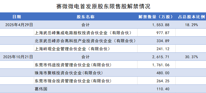 当下,赛微微电控股股东及一致行动人所持股比例即10月即将解禁的总股本的30.37%。