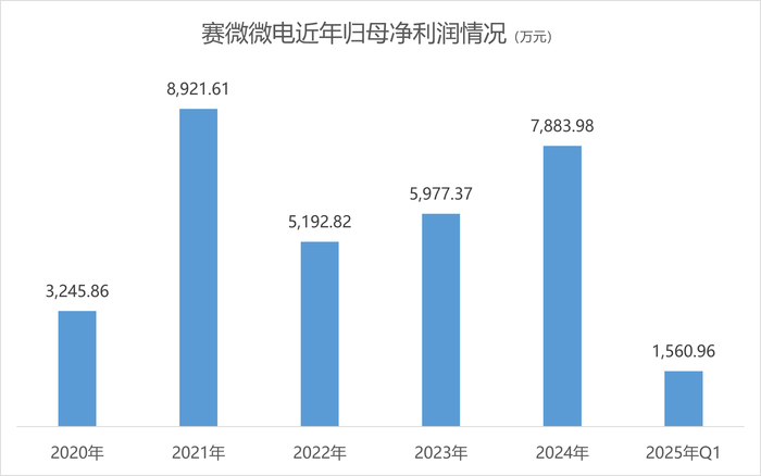 2025年一季度,赛微微电业绩继续好转,营业收入增长42.83%;归母将利润同比大增110.43%至1,560.96万元。