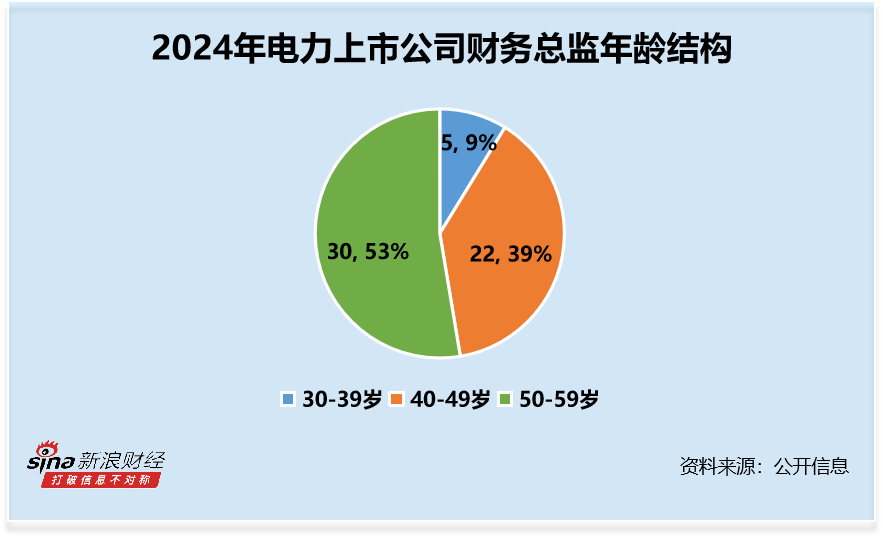 从年龄结构来看,财务总监CFO的年龄平均数约为49.58岁,其中40-49岁最多,人数共22人,占比约39%。其中,林洋能源周辉及韶能股份朱运绍均为57岁,为年龄最大,2024年薪酬分别为74.22万元、57.10万元;年龄最小的为东望时代陈艳,年龄32岁,2024年薪酬为60.05万元。
