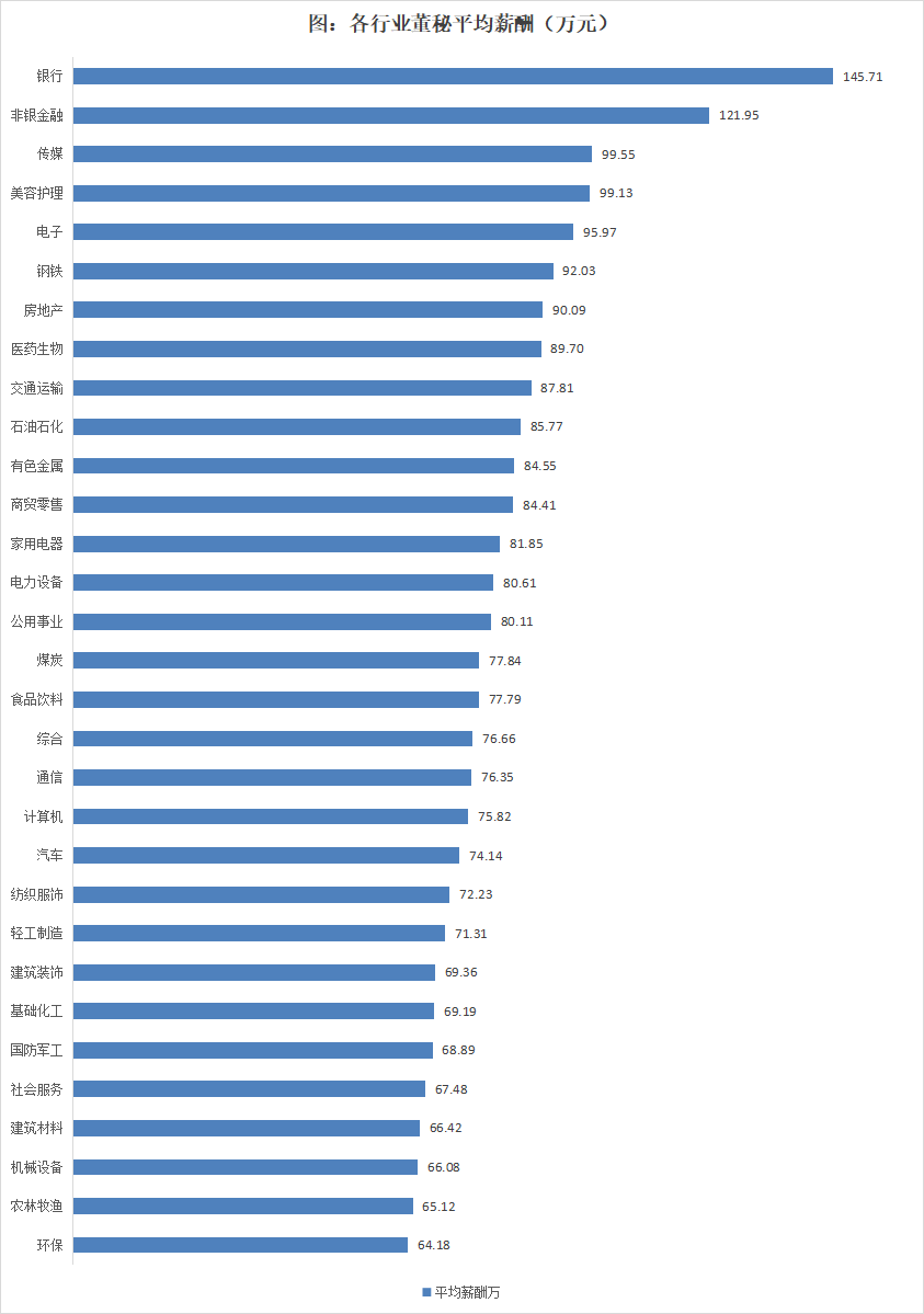 大金融行业董秘薪酬最高,农业、环保薪酬最低