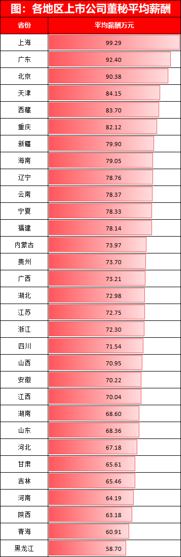 董秘薪酬地域差异显著:上海99万、黑龙江59万,相差40万元