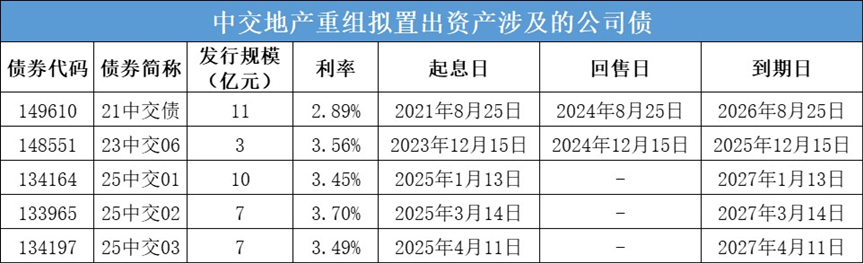9月1日公布的若干公告中还提及,中交地产相关公司债清偿义务转移完成。地产集团承继中交地产发行的“21中交债”、“23中交06”、“25中交01”、“25中交02”和“25中交03”,债务主体由中交地产变更为地产集团。