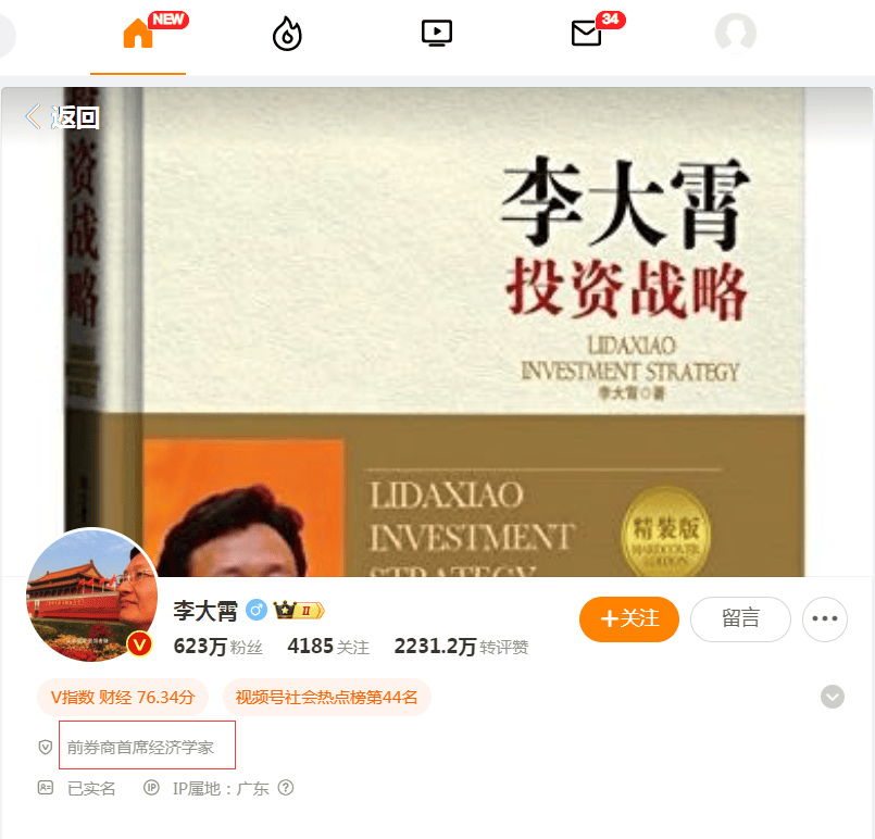 7月26日,李大霄微博简介更新,变更为“前券商首席经济学家”。此前,李大霄任英大证券首席经济学家。目前,李大霄个人微博有623万粉丝,获得2231.1万转评赞。