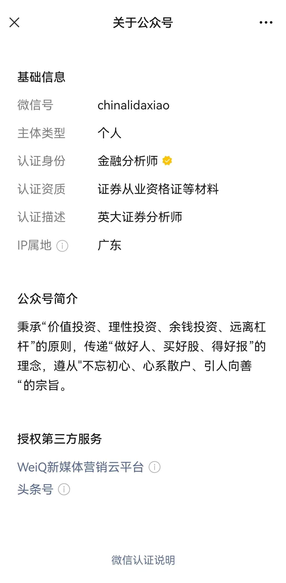 值得注意的是,截至7月26日发稿,李大霄的个人微信公众号简介仍显示为“英大证券分析师”,尚未更新。