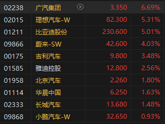 港股收评:恒指涨1.79%恒生科指涨2.53%!汽车股全天强势,广汽涨超6%,理想、比亚迪涨超5%,腾讯涨超4%