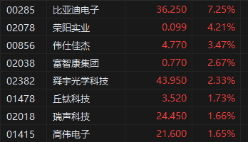 苹果概念股涨幅居前,比亚迪电子涨超7%。消息面上,恒生指数有限公司宣布,比亚迪电子将被纳入恒生指数,所有变动将于6月7日(周五)收市后实施并于6月11日(周二)生效。据中金发布研报称,比亚迪电子纳入恒生指数,纳入权重为0.22%,预计将带来6083万美元(约合4.76亿港元)被动资金流入。而下周即将召开的苹果WWDC大会作为消费电子行业近期一大看点,也有望进一步催化板块行情。
