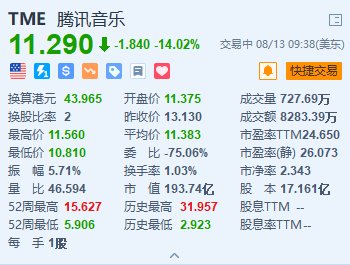 美股异动丨腾讯音乐跌超14% Q2收入同比下降1.7% 月活用户数下滑