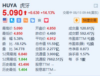 美股异动|虎牙涨超14% 宣布延长股票回购计划 拟派特别股息