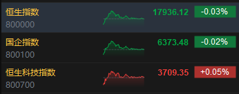 收评:恒指微跌0.03% 恒生科指涨0.05%苹果概念股表现活跃