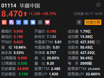 汽车股个别强势,华晨中国大涨超18%。消息方面,华晨中国在2024年6月14日的董事会上宣布了一项重大财务决策,即向股东宣派特别股息,每股公司普通股将获得4.3港元。公告还指出,预期特别股息将于2024年7月25日前后以现金方式向于2024年7月9日(星期二)名列公司股东名册的股东派发。