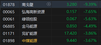 煤炭股普遍走弱,南戈壁跌超9%。消息面上,截至6月14日,秦皇岛港动力煤(Q5500)山西产市场价872.0元/吨,周环比下跌3.0元/吨。信达证券认为,煤炭价格依旧呈震荡态势,迎峰度夏预期尚未兑现。