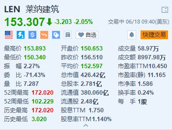 美股异动|莱纳建筑一度跌近4% 第三季度新增订单及交付指引逊预期