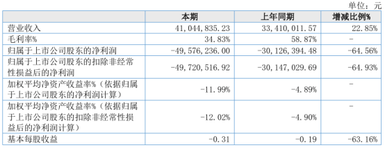 挖贝网8月27日,微创光电(430198)近日发布2024年半年度报告,报告期内公司实现营业收入41,044,835.23元,同比增长22.85%;归属于上市公司股东的净利润-49,576,236.00元,较上年同期亏损增加。