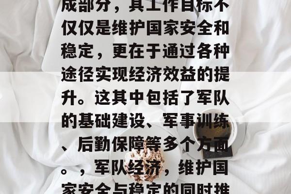 军队作为国家的重要组成部分,其工作目标不仅仅是维护国家安全和稳定,更在于通过各种途径实现经济效益的提升。这其中包括了军队的基础建设、军事训练、后勤保障等多个方面。,军队经济,维护国家安全与稳定的同时推动经济效益提升
