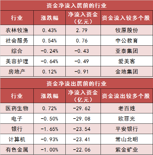 两市主力资金净流出超136亿元 农林牧渔等行业实现净流入