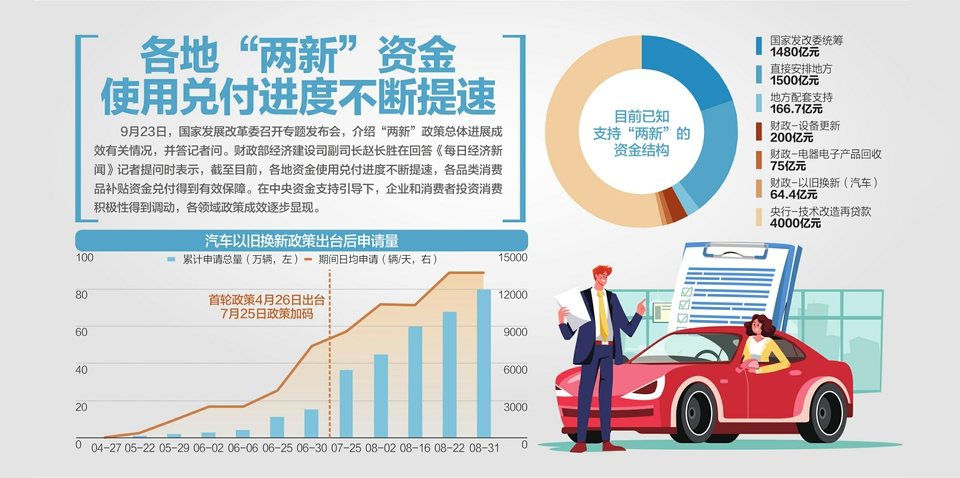 9月23日,国家发展改革委召开专题新闻发布会,介绍大规模设备更新和消费品以旧换新(以下简称两新)政策总体进展成效。