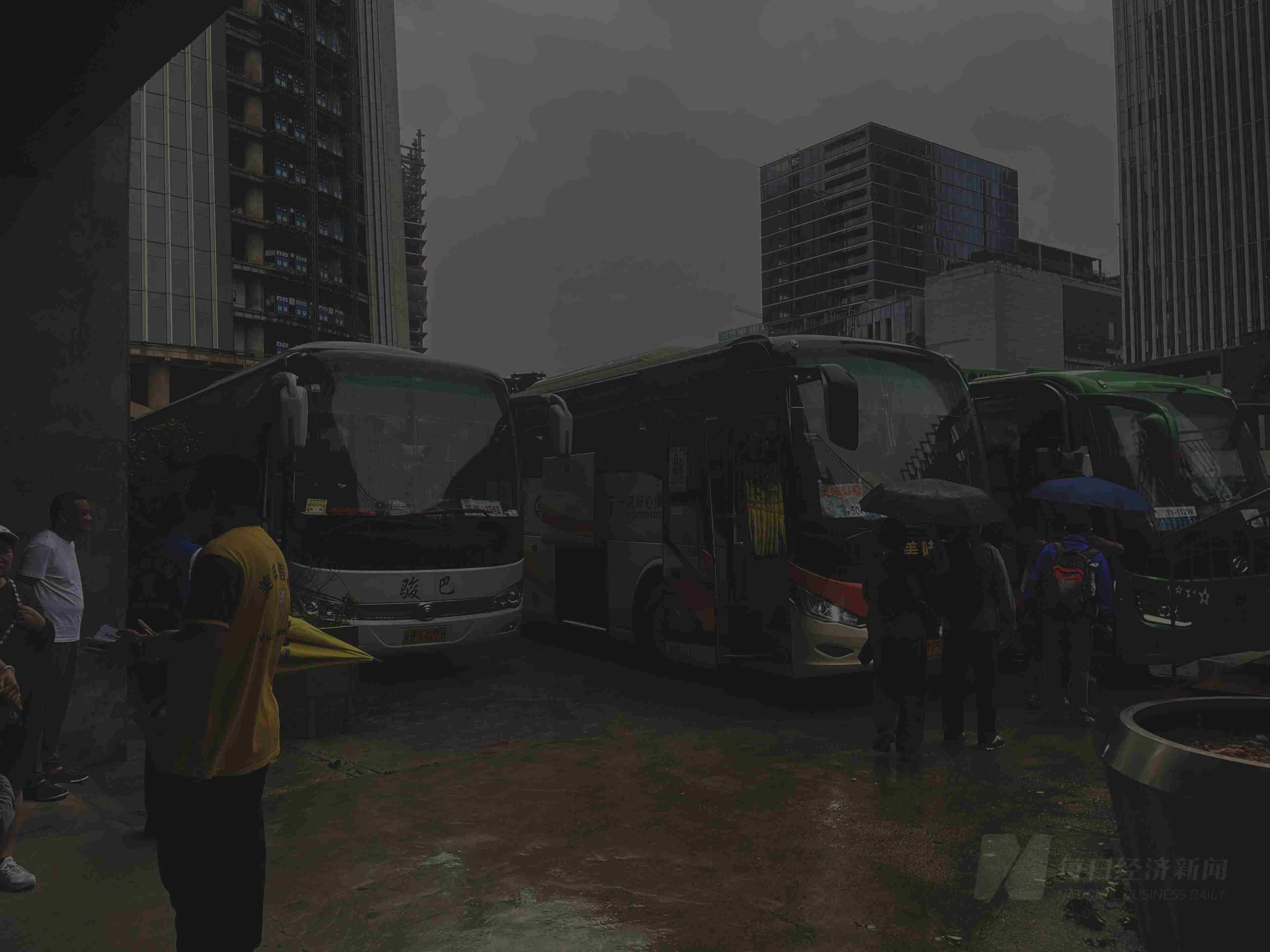 香港居民来深圳消费搭乘的多辆旅游大巴 图片来源:每经记者 甄素静 摄