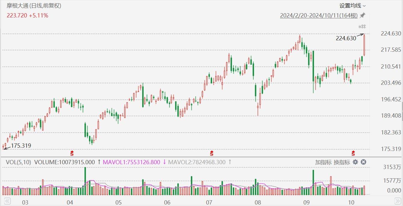 美股异动丨摩根大通涨超5%创历史新高,市值超6300亿,Q3业绩超预期
