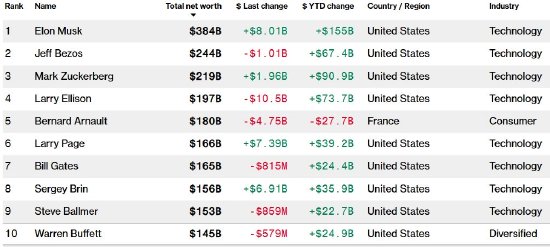 马斯克的财富已激增至约3840亿美元 和第二名的差距拉大