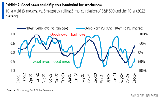 自8月出现抛售以来,美股一直携债券收益率上涨,但随着10年期收益率升破4.5%,美国银行认为“市场正转向‘好消息就是坏消息’的模式”。
