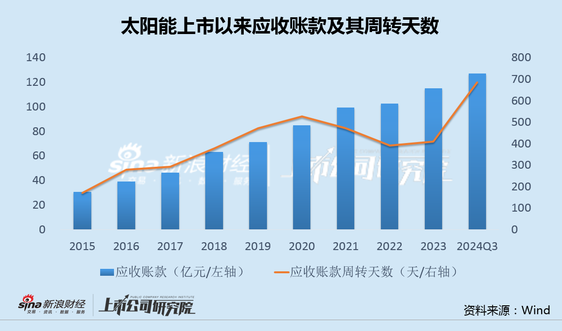 由于下游面对的是大客户,太阳能话语权相对薄弱,自上市以来,公司应收账款和周转天数逐步走高,在2024年前三季度均创下新高,回款问题日益凸显。