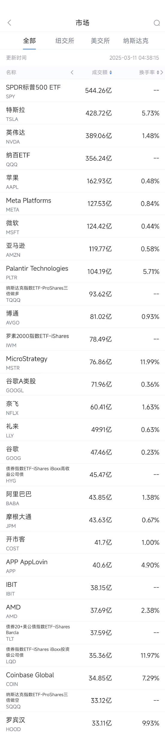 第17名Applovin收跌11.98%,成交40.6亿美元。因未能入选最新标普500指数调整名单,Coinbase和Applovin股价大幅下跌。此前这两家公司均被视作热门候选。