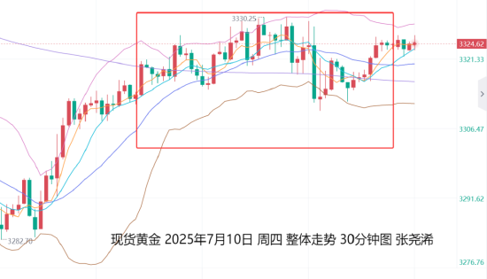 7月11日:上交易日周四(7月10日):国际黄金延续周三触底回升之力反弹收涨,日内颇为震荡,先是自亚市开盘震荡走强,于欧盘录得日内高点3330.16美元,后又遇阻回落,于美盘初录得日内低点3310.15美元,最后触底回升收涨0.32%。