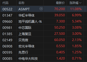 芯片股走强,华虹半导体涨近7%。SEMI在报告中指出,2025年全球原始设备制造商(OEM)的半导体制造设备总销售额预计将创下1255亿美元的新纪录,同比增长7.4%。天风证券(601162)认为,综合来看2025年,全球半导体增长延续乐观增长走势,2025年AI驱下游增长。