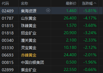 黄金股回调,山东黄金跌超4%。现货黄金跌破3370美元/盎司。此外,中国黄金协会发布数据显示,今年上半年,内地黄金产量179.08吨,按年下降0.31%。期内,黄金消费量505.21吨,按年下降3.54%。