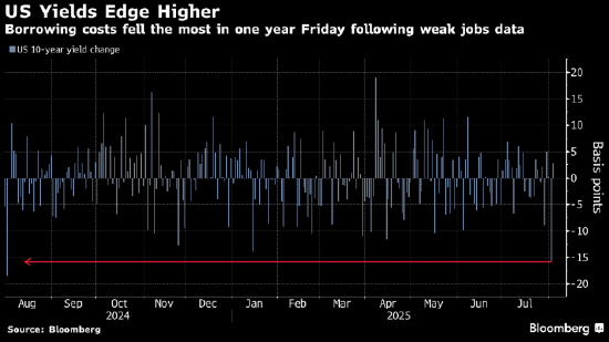 根据与政策会议日期挂钩的互换合约,货币市场预计美联储9月降息25个基点的可能性约为85%。尽管低于周五90%的峰值,但远高于就业数据公布前预期的40%。