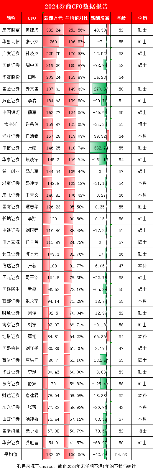 在券商行业的竞争格局中,财务总监的专业能力是公司稳健发展的重要基石。2024年数据显示,券商行业CFO平均薪酬为132万元,而信达证券财务总监张毅的薪酬为108万元,约为行业平均水平的八成二,明显低于行业CFO平均水准。
