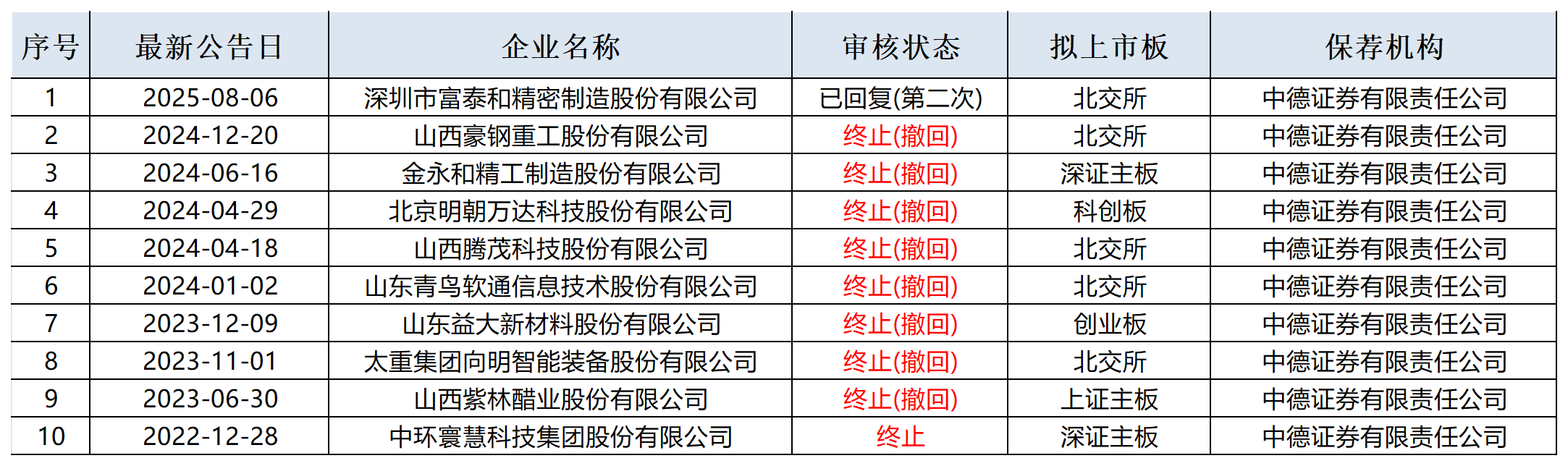 中德证券连续三年没有IPO保荐项目上市 三年撤回9家目前仅剩1家