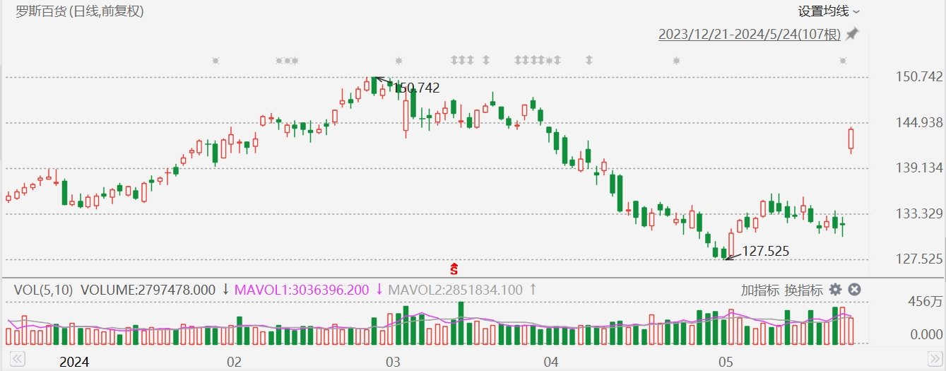 罗斯百货(ROST.US)跳空上涨,盘中一度大涨超9%至144.37美元,股价创4月2日以来新高。