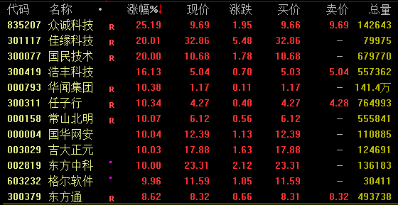 网络安全概念强势拉升,截至收盘,佳缘科技、国民技术“20cm”涨停,任子行(300311)涨超10%,常山北明(000158)、国华网安、吉大正元、东方中科(002819)、格尔软件(603232)等均涨停。