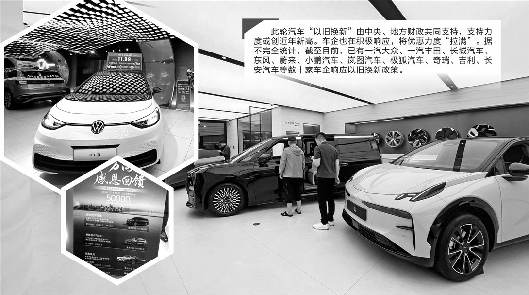 证券时报记者在实际探访中发现,多数汽车销售门店均将带有以旧换新优惠方案的展示板放在门店最显眼的位置。