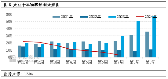 从天气数据看,未来3周,美国产区降水较多,将为大豆生产提供足够的水分;从NOAA公布的全球气候预测看,5-7月全球有87%的概率维持在中性状态,有利于农作物生长。从目前的影响看,截至5月28日,干旱对美豆产区的影响面积只有3%,五年均值为13%。因此,无论从预期还是现实,目前天气均对美豆价格形成利空驱动。