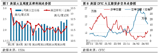 尽管供应端吸人眼球,但是需求端同样重要。美豆压榨利润持续走弱的趋势还在继续,主要因为利润不佳导致大量停机检修。从CFTC公布的大豆期货非商业头寸变化看,空单在月底前大量回补,主动做多意愿不强,市场缺乏持续上涨动力。