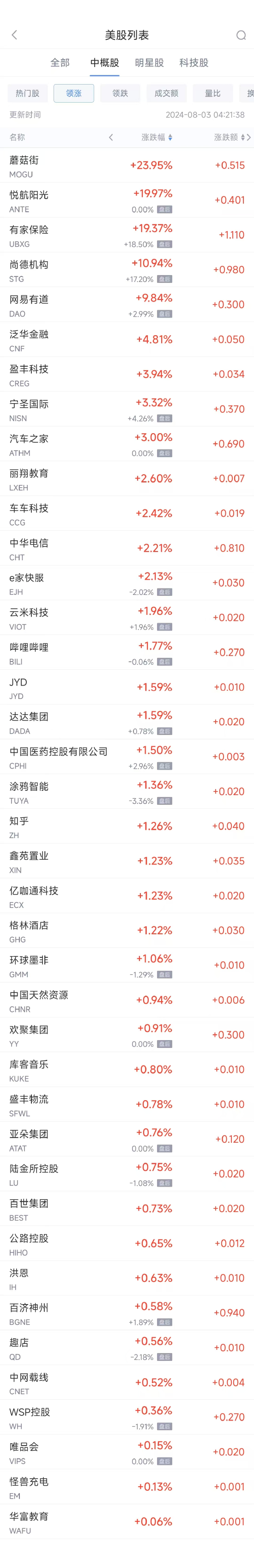 (截图来自新浪财经APP 行情-美股-中概股热门板块)下载新浪财经APP