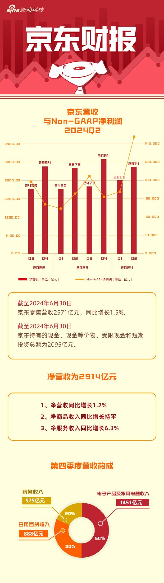 看图:京东第二季度营收2914亿元 Non-GAAP净利同比增69%