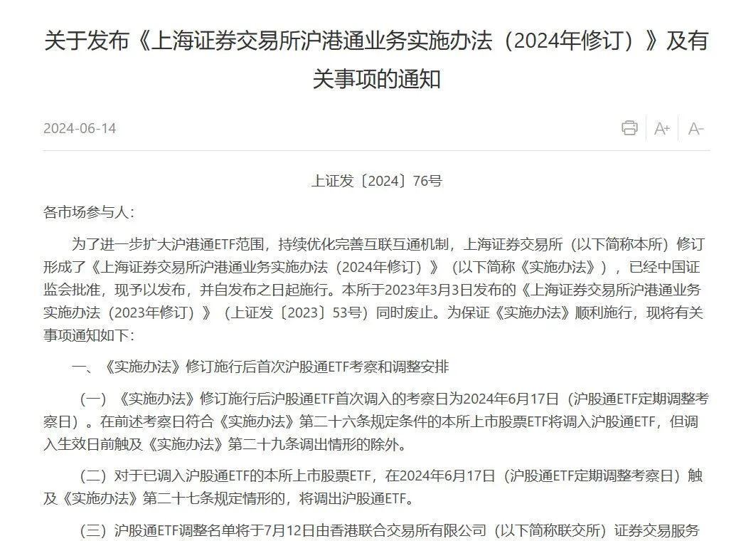 6月14日,沪深交易所发布了修订后的《沪/深港通业务实施办法》(以下称《实施办法》),并自发布之日起实施。