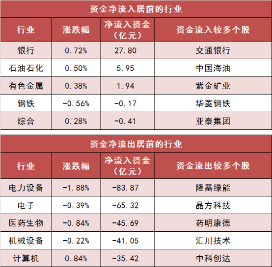 两市主力资金净流出超148亿元 银行等行业实现净流入