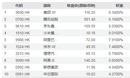 从恒生科技指数权重股来看,其主要权重股包括了美团、京东集团、小米集团、腾讯控股、阿里巴巴以及联想等,而这上述个股均为每经品牌100指数成分股,具有覆盖投资意义。