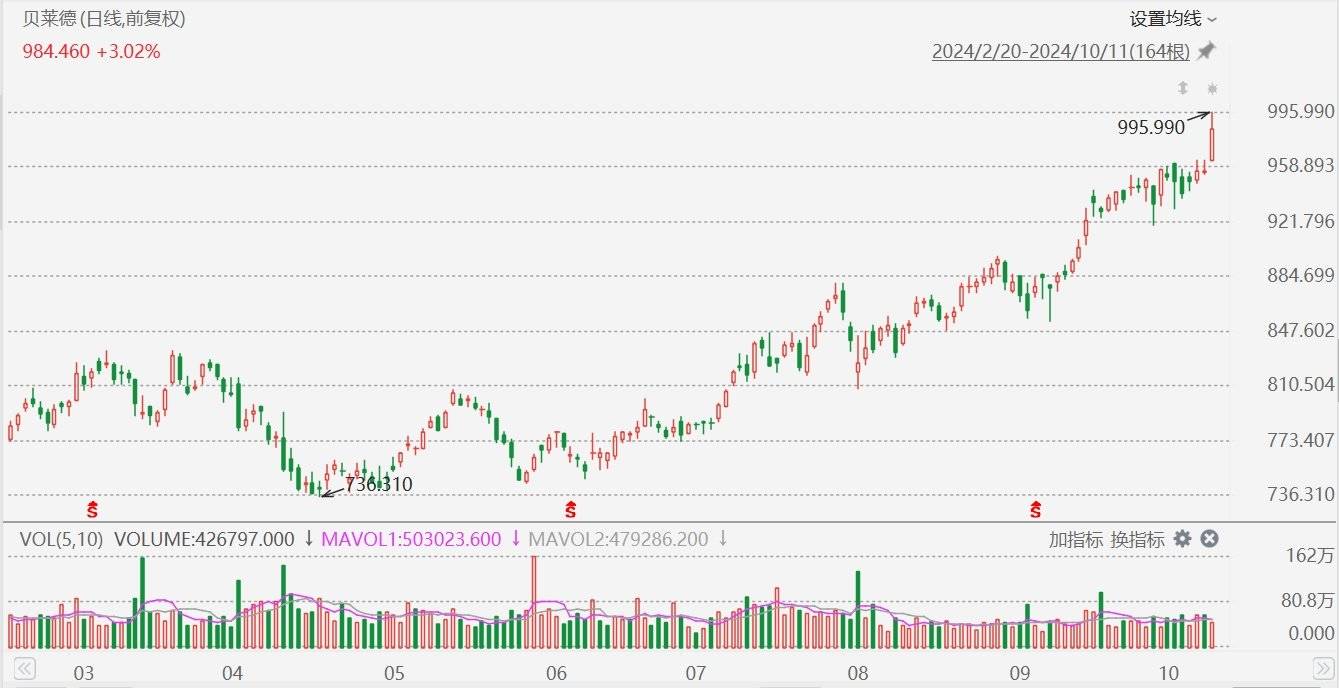 贝莱德(BLK.US)盘中涨4.23%至995.99美元,创历史新高。消息面上,贝莱德公布,第三季度营收52亿美元,同比增长15%,高于市场预期的50亿美元;第三季度调整后每股收益11.46美元,高于市场预期的10.40美元。(格隆汇)