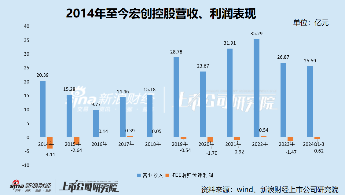 2014年至2023年,宏创控股6年时间处于亏损状态,且营业收入“坐上过山车”。