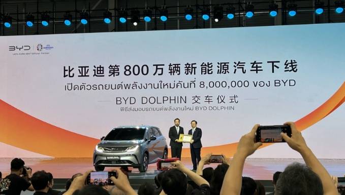 在泰国工厂竣工仪式的同时,比亚迪第800万辆新能源车也同步下线。从今年3月25日的第700万辆新能源车下线到7月4日的第800万辆新能源车下线,比亚迪仅用了不到4个月时间,就实现了100万辆新能源汽车的生产,速度远超行业平均水平。
