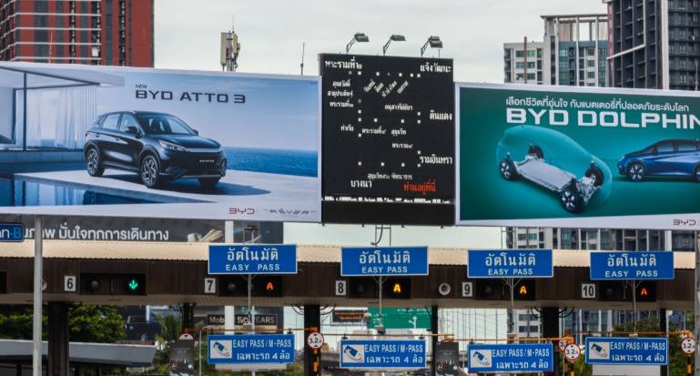 而在泰国电动车市场高速增长的过程中,中国新能源汽车品牌占据了重要的市场份额。数据显示,2023年在泰国的电动车市场中,中国品牌的市场占有率即占到了70%―80%,且在泰国电动车市场的销量前十名中有多达八个都是中国品牌,其中前四名均为中国品牌。