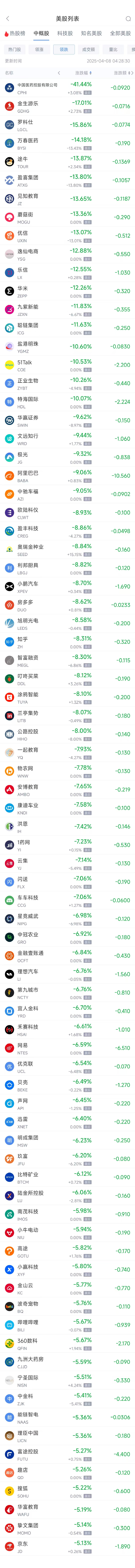 (截图来自新浪财经APP 行情-美股-中概股热门板块)下载新浪财经APP