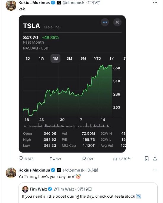 特斯拉股价连续四周上涨,马斯克发图嘲讽沃尔兹